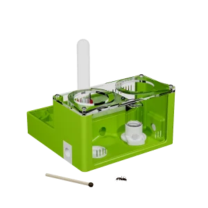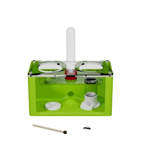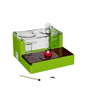 Este formigueiro compacto de 10x10cm é a solução perfeita para iniciar novas colônias ou manter pequenas espécies. Com um design "tudo-em-um" na cor verde vibrante, ele combina uma área de forrageamento (arena) espaçosa com um sistema de ninho integrado, oferecendo visibilidade total e controle de umidade.